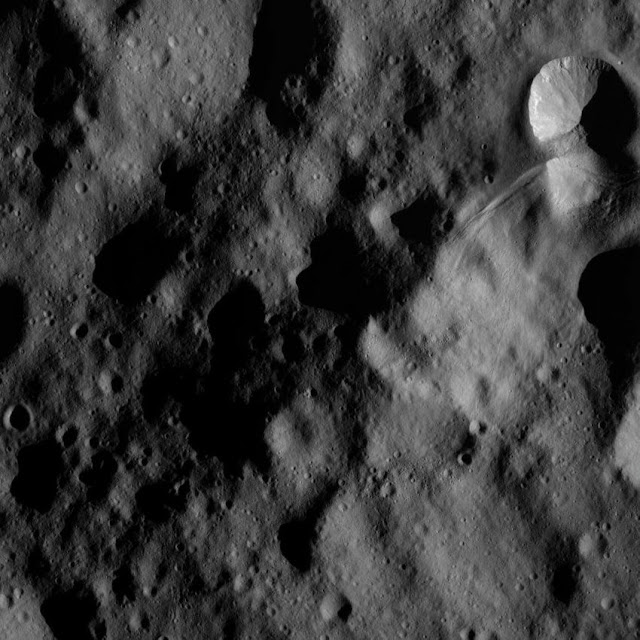| Nördliche Hemisphäre von Vesta: Zahlreiche kleinere Krater künden von Einschlägen auf dem Asteroiden. Foto: REUTERS/ NASA/ JPL-Caltech | SPIEGEL-ONLINE |